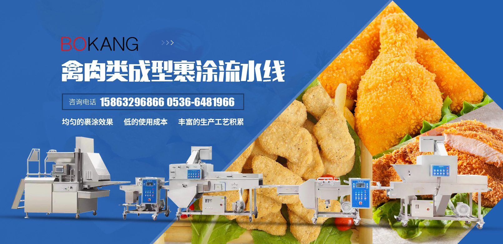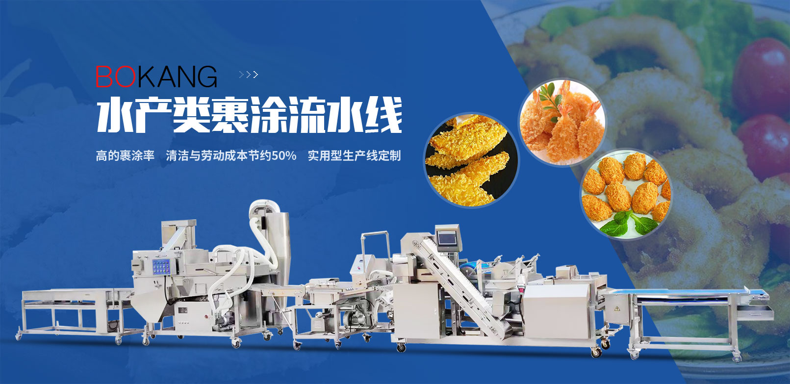我們是一家生產(chǎn)預制調(diào)理類成型裹涂設備的廠家。為您提供產(chǎn)品裹涂解決方案。經(jīng)過多年的努力與革新,既可給食品工業(yè)的用戶提供生產(chǎn)線中的單臺設備,也可以提供多種設備組成的完整生產(chǎn)線。